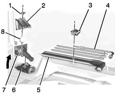 Be sure the hoist end of the extension (10) connects to the hoist shaft. The ribbed square end of the extension is used to lower the spare tire.