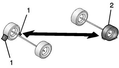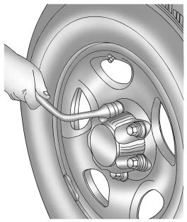 If the vehicle has a center cap with wheel nut caps, the wheel nut caps are designed to stay with the center cap after they are loosened. Remove the entire center cap.