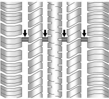 Treadwear Indicators : Narrow bands, sometimes called wear bars, that show across the tread of a tire when only 1.6 mm