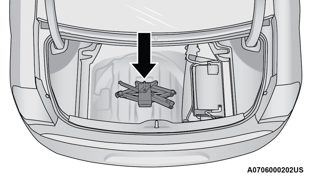 A loose tire or jack thrown forward in a collision or hard stop could endanger the occupants of the vehicle. Always stow the jack parts and the spare tire in the places provided. Have the deflated (flat) tire repaired or replaced immediately.