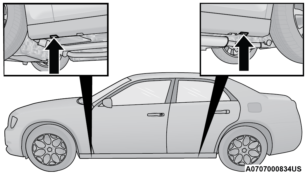 Placement for the front and rear jacking locations are critical. See the following images for proper jacking locations.