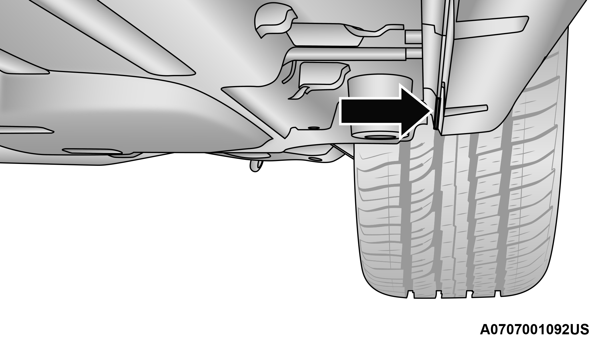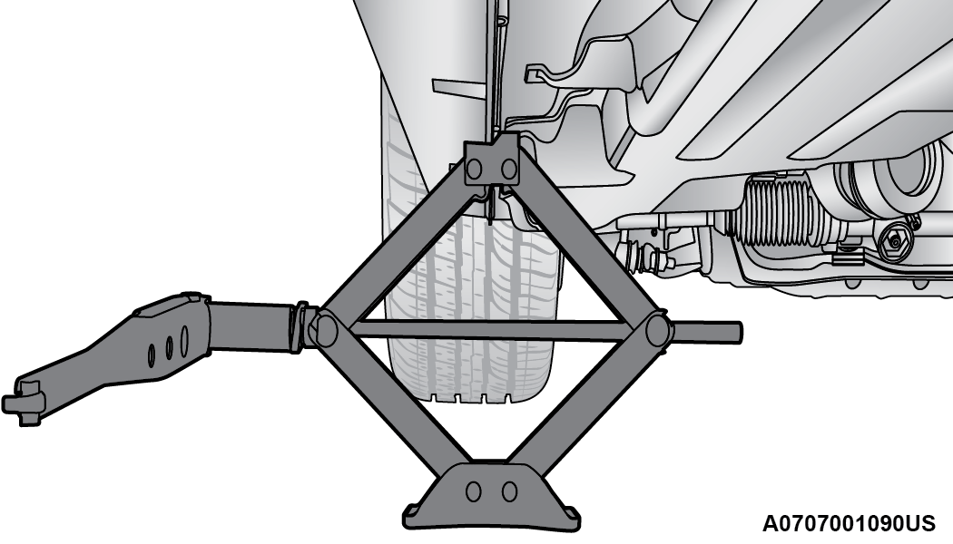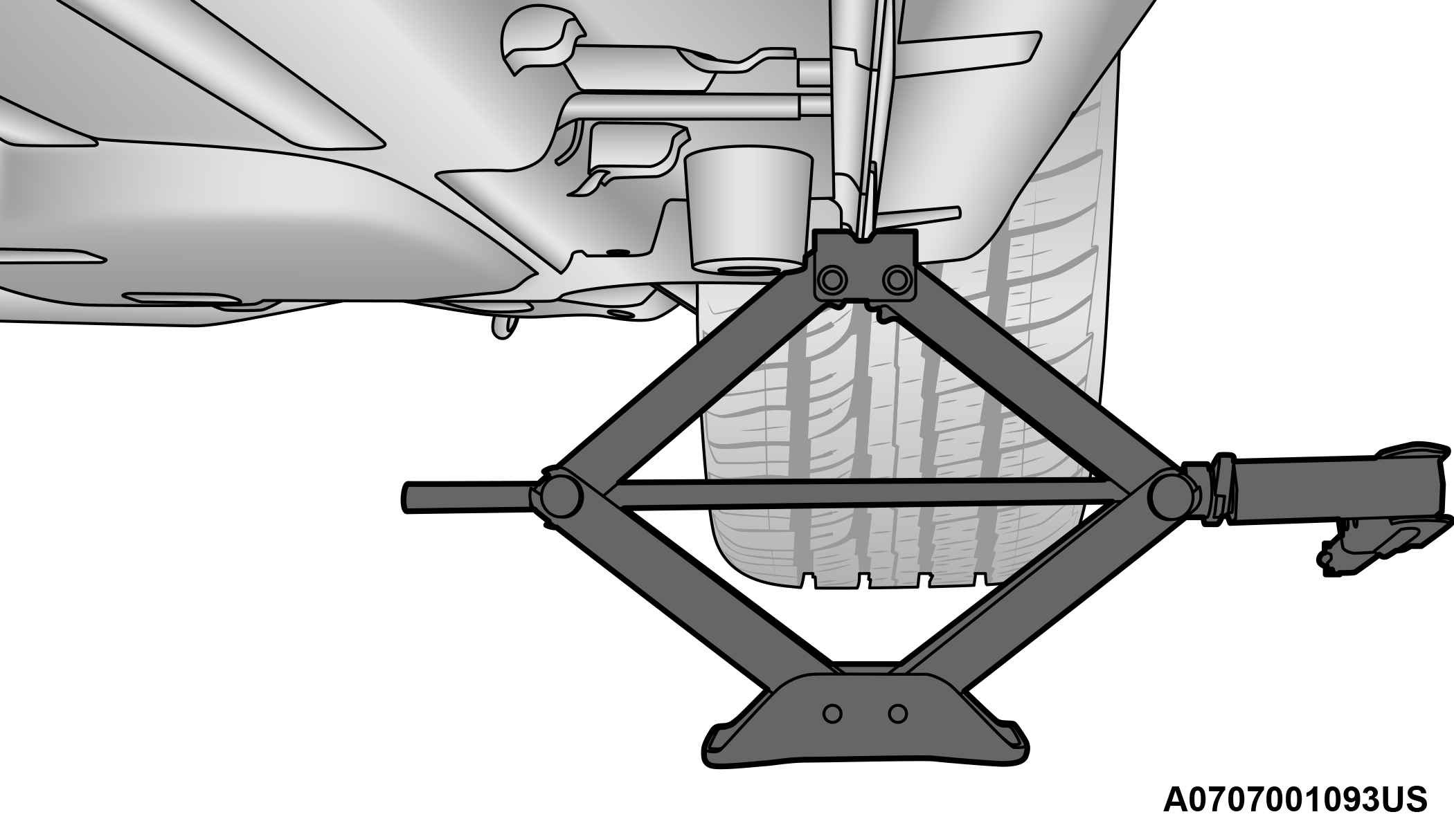 Place the jack underneath the lift area that is closest to the flat tire. Turn the jack screw clockwise to firmly engage the jack saddle with the lift area of the sill flange.
