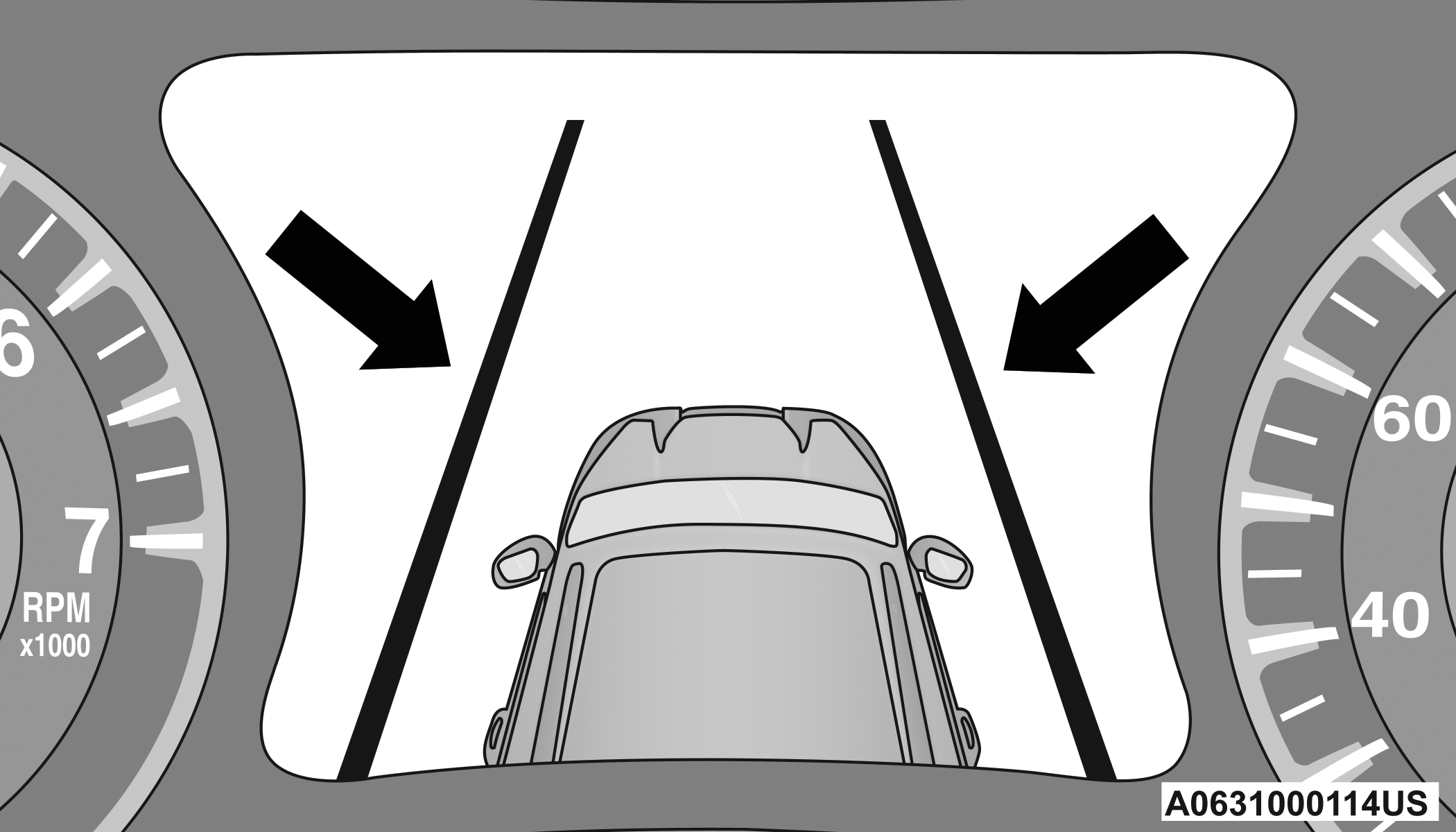 When the LaneSense system senses the lane has been approached and is in a lane departure situation, the left thick lane line flashes yellow (on/off), the left thin line remains solid yellow and the LaneSense telltale changes from solid white to flashing yellow.
