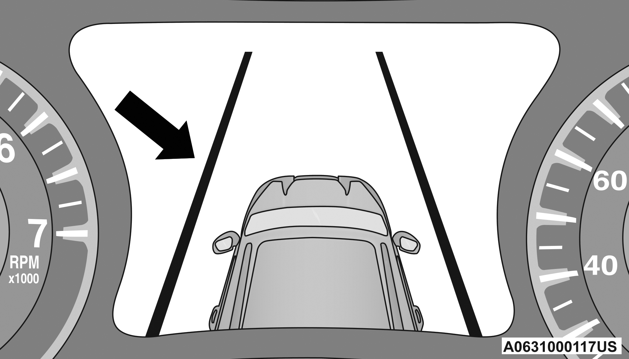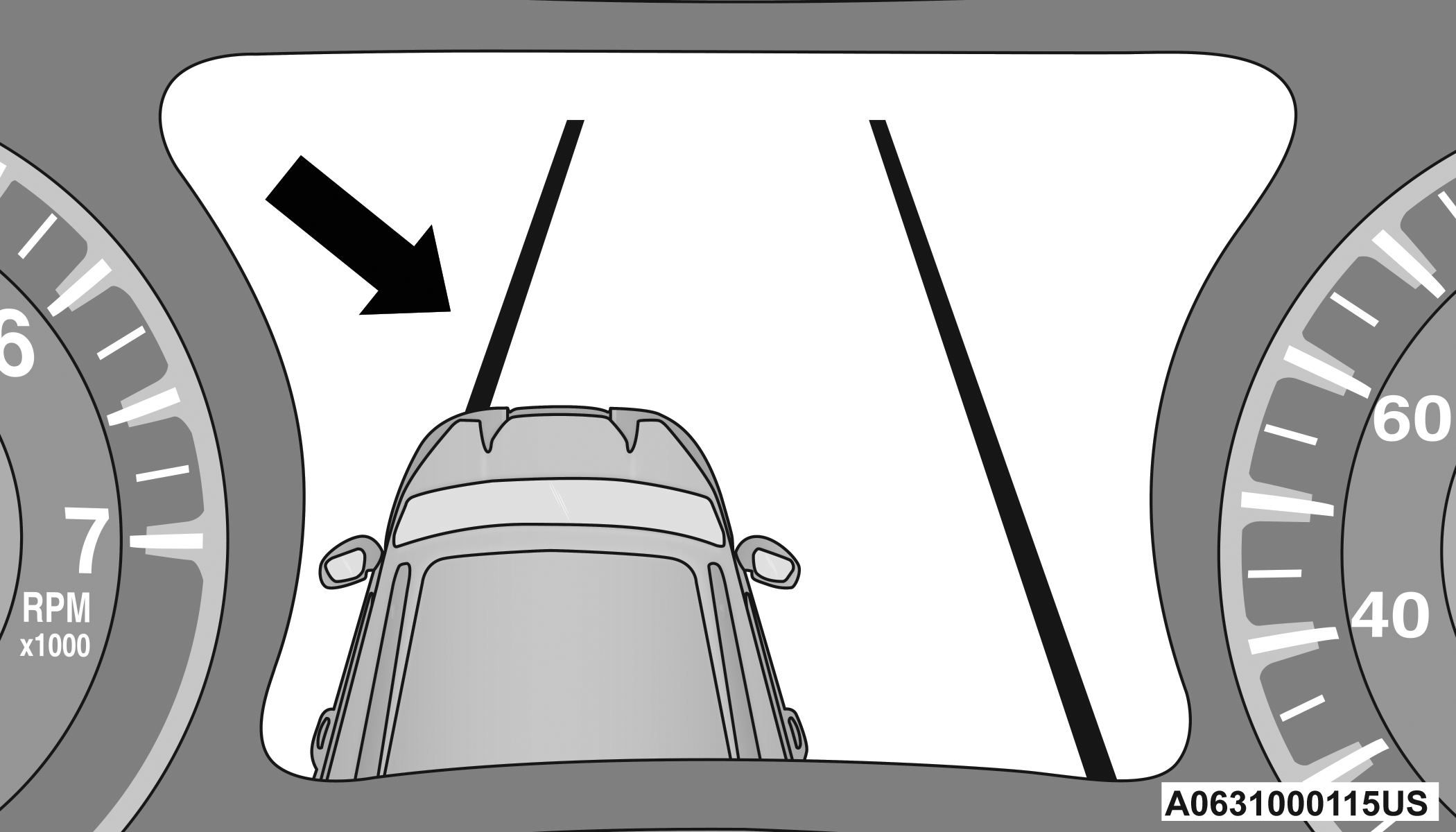 When the LaneSense system is on, the LaneSense telltale is solid white when only the left lane marking has been detected and the system is ready to provide visual warnings in the instrument cluster display if an unintentional lane departure occurs.