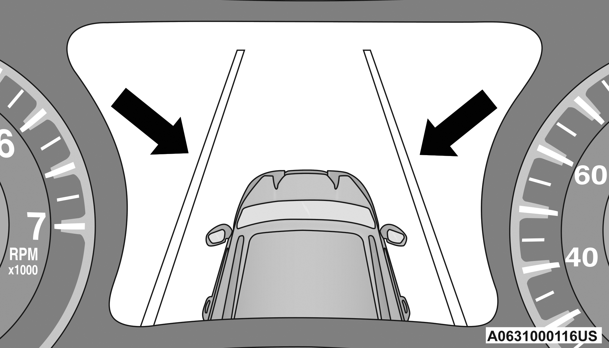 When both lane markings are detected and the driver unintentionally drifts out of the lane (no turn signal applied), the LaneSense system provides a haptic warning in the form of torque applied to the steering wheel to prompt the driver to remain within the lane boundaries. If the driver unintentionally drifts out of the lane, the LaneSense system provides a visual warning through the instrument cluster display to prompt the driver to remain within the lane boundaries.