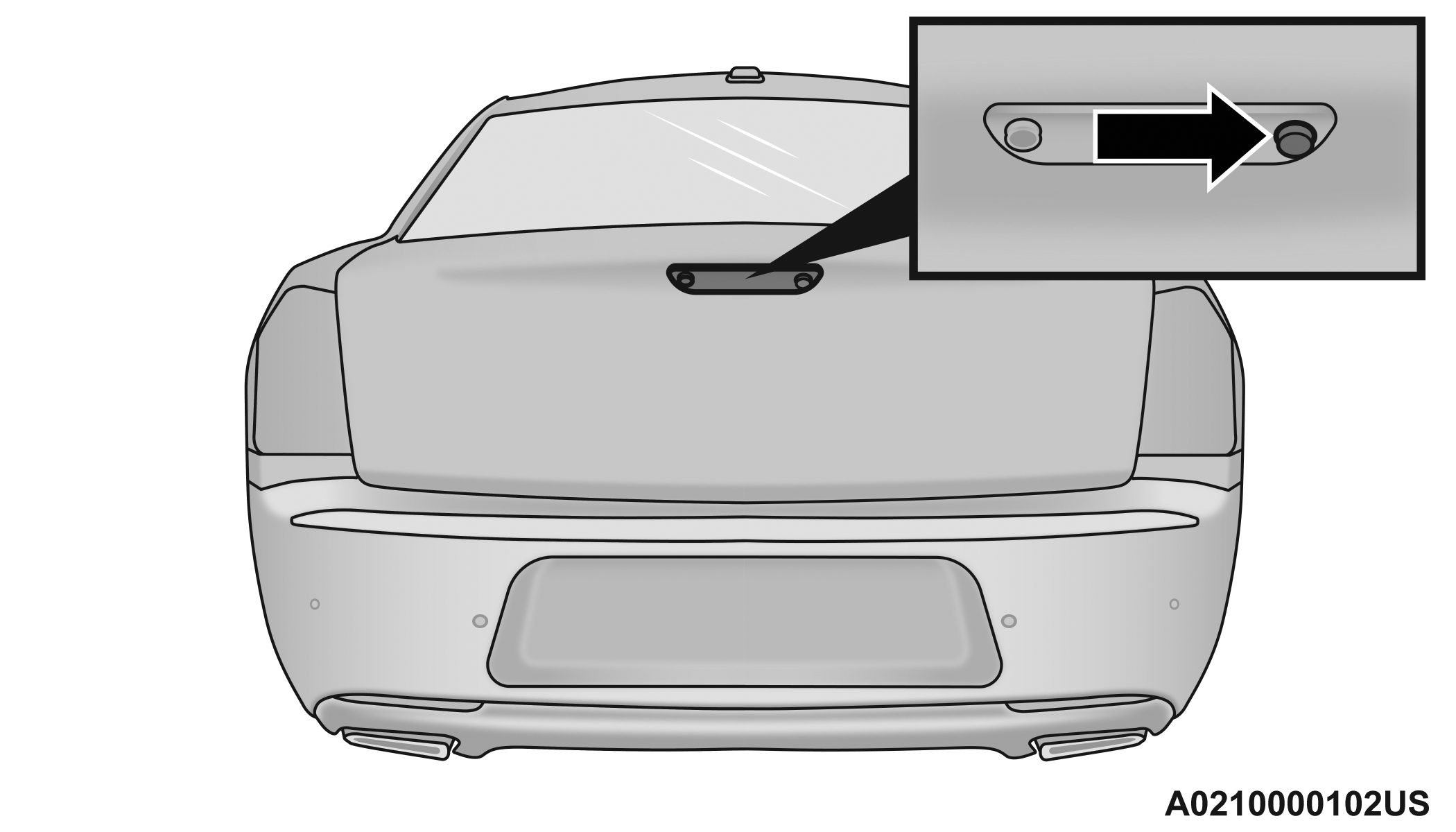 Push the trunk Passive Entry button which is located on the right side of the trunk lid. With a valid Passive Entry key fob within 5 ft (1.5 m) of the trunk, push the Passive Entry button to open the trunk.
