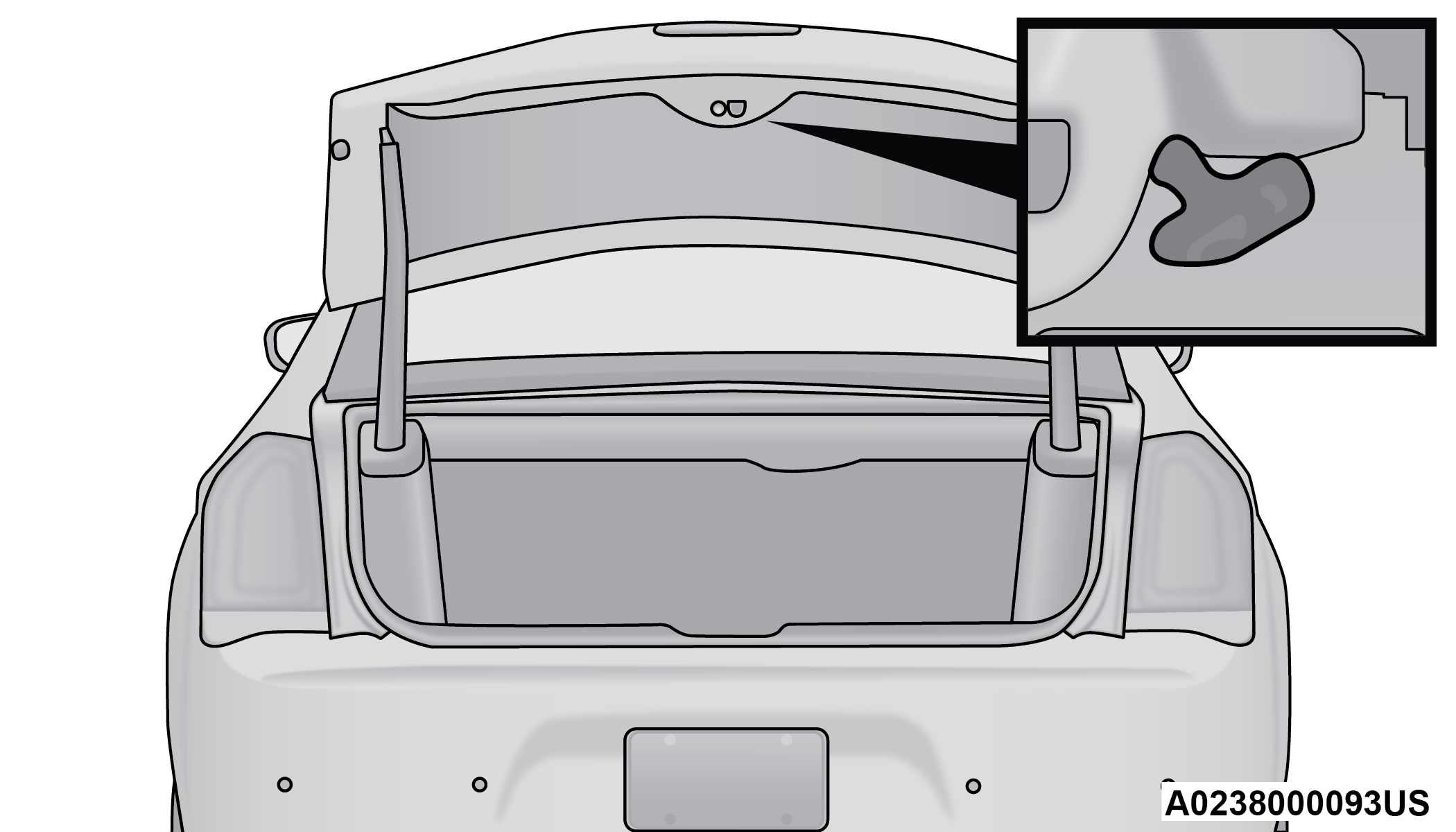 As a security measure, a trunk internal emergency release lever is built into the trunk latching mechanism. In the event of an individual being locked inside the trunk, the trunk can be opened by actuating the glow-in-the-dark handle attached to the trunk latching mechanism.
