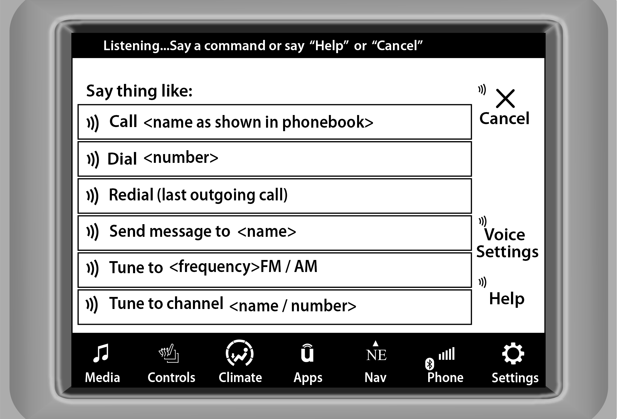 “Help” to hear a list of suggested Voice Commands