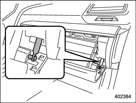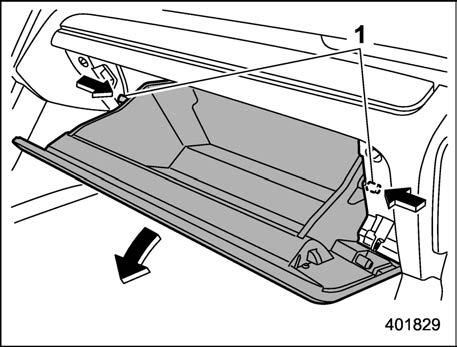 Push in the stoppers located on both sides of the glove box and then pull down the glove box as far as it will go.