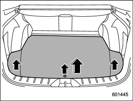 Pull the strap to open the center part of the cargo floor lid, and then remove the lid.