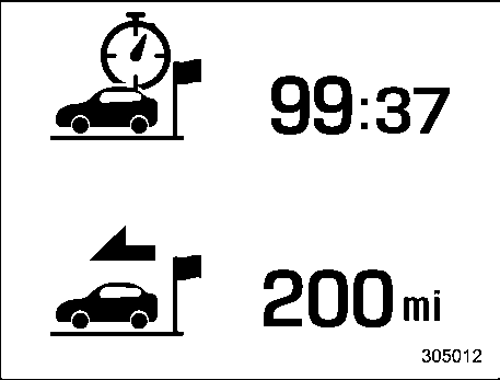 This screen displays the journey time (the time that has elapsed since the ignition switch was turned to the “ON” position) and journey distance (the distance that has been driven since the ignition switch was turned to the “ON” position).