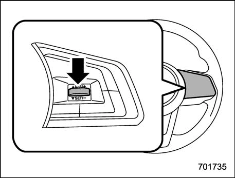 The set speed can be decreased 1 km/h each time by pressing the “RES/SET” switch to the “SET” side.