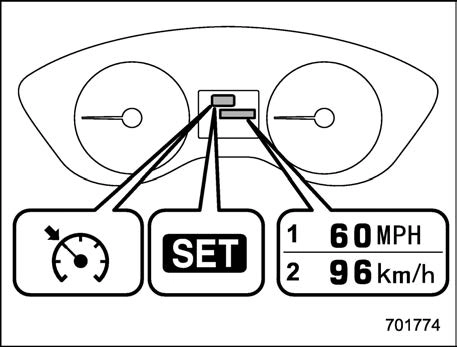 At this time, the cruise control set indicator light is illuminated in the combination meter. The set speed will be shown on the combination meter. You can change the displayed unit by operating the combi- nation meter display. For meter details, refer to “Combination meter settings”