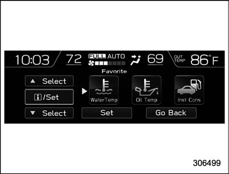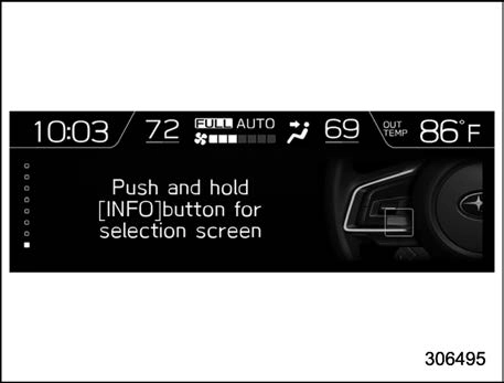 Press the INFO button on the steering wheel to switch the item displayed on the basic screen. You can operate the items on the setting screen by using the “