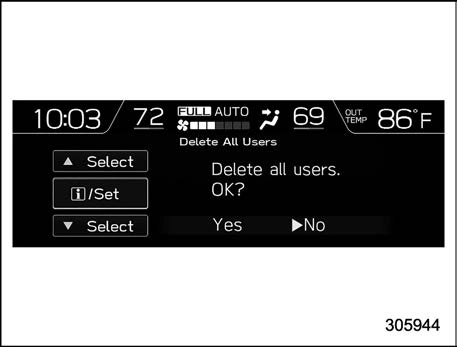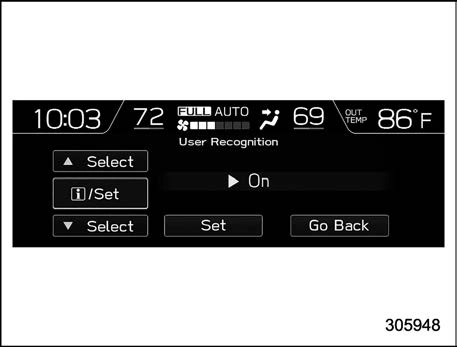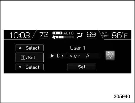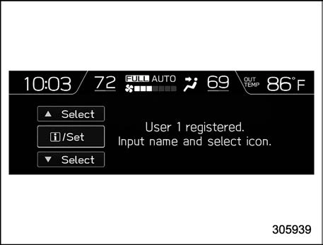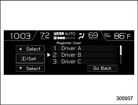 . If the ignition switch is turned to the “OFF” position before user registration is complete, the information of the adjusted seat position, outside mirror angle, and reverse tilt-down outside mirror angle will not be saved.