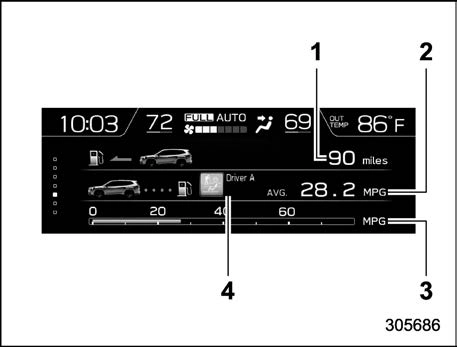 If the driver is recognized by the Driver Monitoring System, average fuel con- sumption for the driver will be displayed.