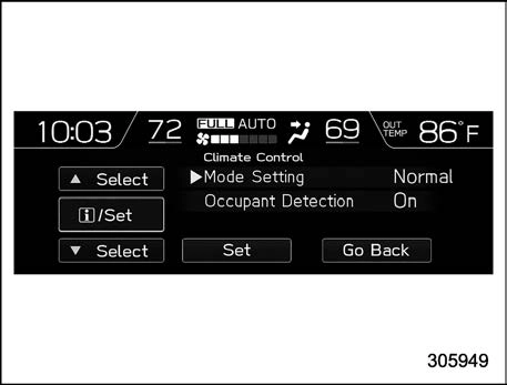 When operating the climate control sys- tem, the basic screen switches to the climate control screen. For details about climate control operation, refer to “Climate