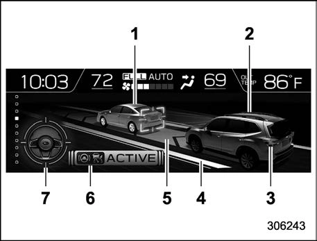EyeSight system. The lead vehicle indica- tor moves forward and backward depend- ing on the distance with the vehicle in front. For details, refer to the Owner’s Manual supplement for the EyeSight system.
