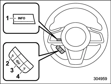 Press the INFO button on the steering wheel to switch the item displayed on the information screen.