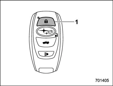 An access key fob can be used as the remote engine start transmitter. Operate the lock button to start or stop the engine as follows.