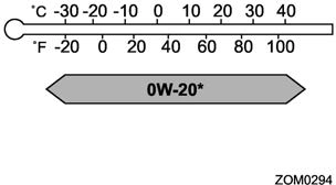 0W-20 synthetic oil is the required oil for optimum engine performance and protection. Conventional oil may be used if synthetic oil is unavailable. *: If 0W-20 synthetic oil is not available, 5W-30 conventional oil may be used if replenishment is needed but should be changed to 0W-20 synthetic oil at the next oil change.