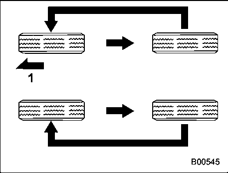 Tire wear varies from wheel to wheel. Move the tires to the posi- tions shown in the illustration each time they are rotated. For the tire rotation schedule, refer to the “War- ranty and Maintenance Booklet”.