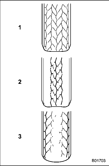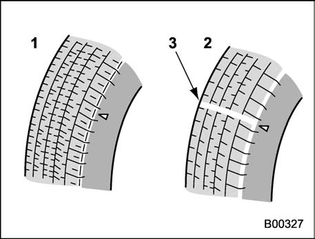 Each tire incorporates a tread wear indicator, which becomes visible when the depth of the tread grooves decreases to 0.063 in (1.6 mm). A tire must be replaced when the tread wear indicator appears as a solid band across the tread.