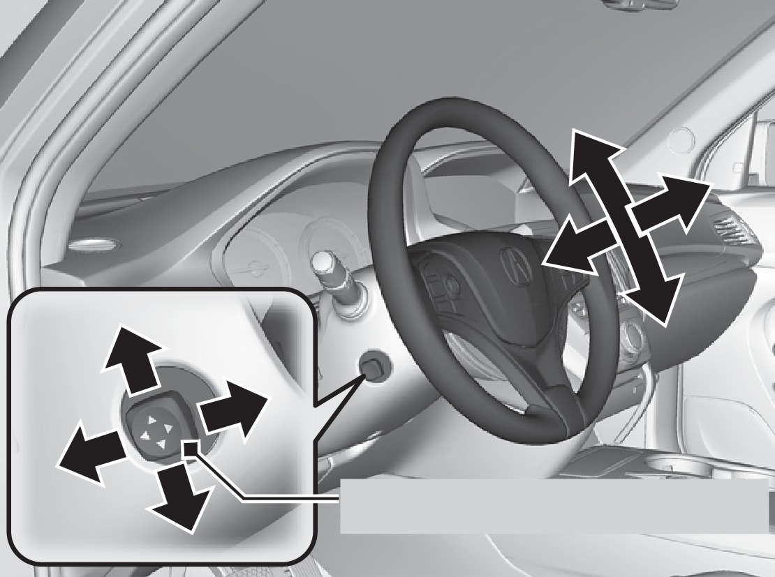 Press and hold the adjustment switch to move the steering wheel in, out, up, or down.