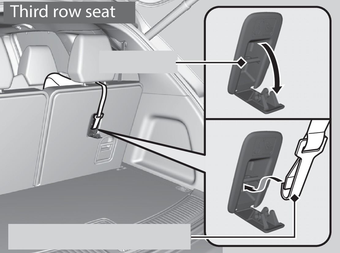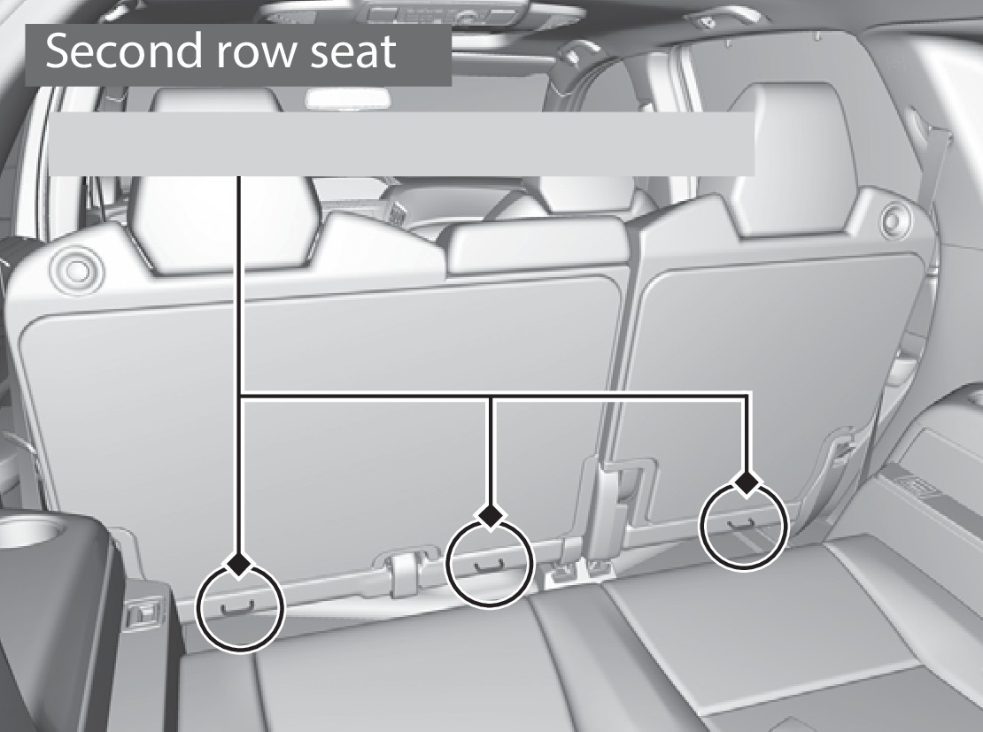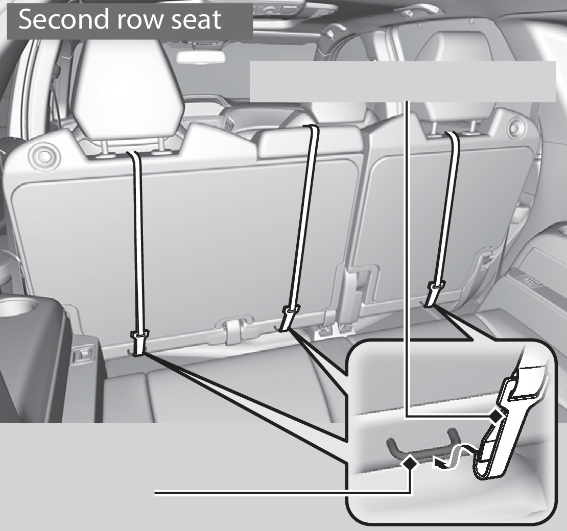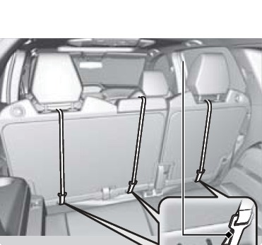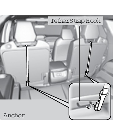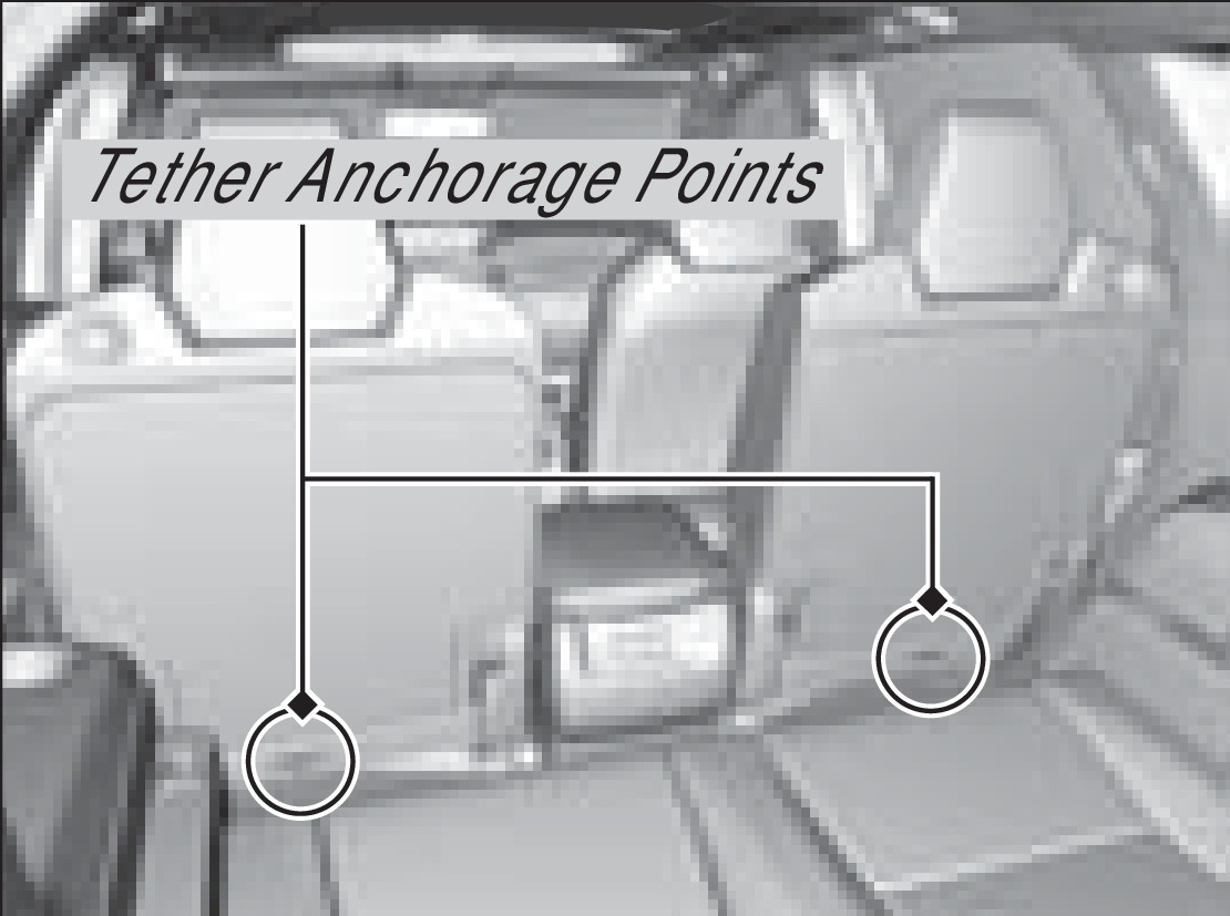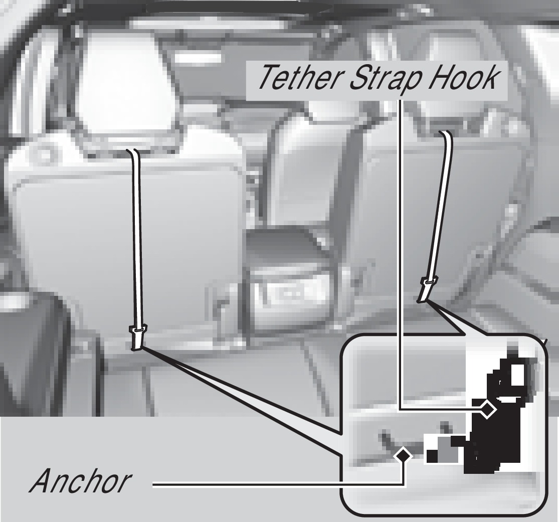 A tether anchorage point is provided behind each second- and third-row seating position. A child seat that is installed with a seat belt and comes with a tether can use the tether for additional security.