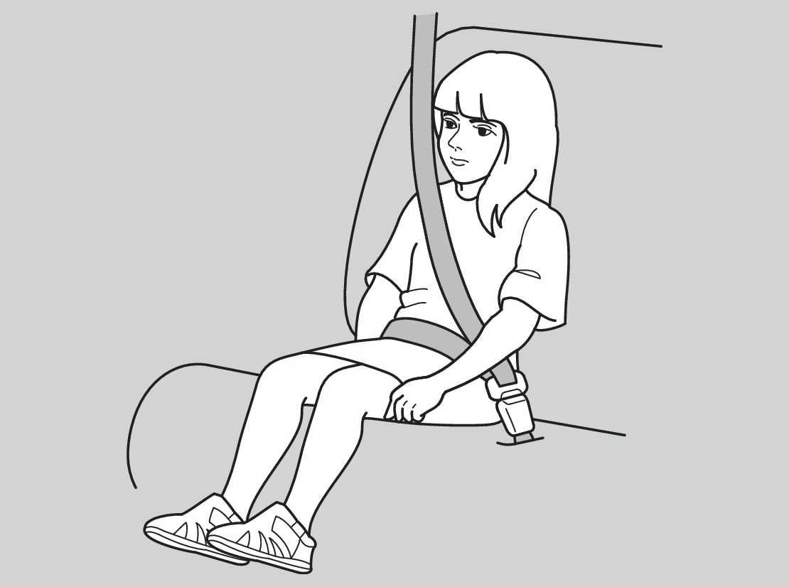 Any child too small for a seat belt should be properly restrained in a child seat. A larger child should be properly restrained with a seat belt, using a booster seat if necessary.