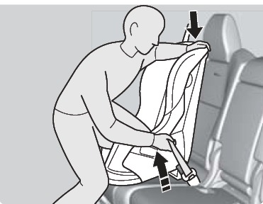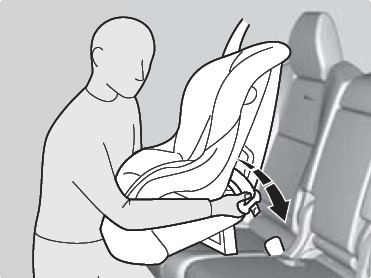 - Grab the shoulder part of the seat belt near the buckle, and pull up to remove any slack from the lap part of the belt. When doing this, place your weight on the child seat and push it into the vehicle seat.