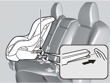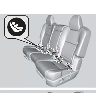 A LATCH-compatible child seat can be installed in either of the two outer-rear seats. A child seat is attached to the lower anchors with either the rigid or flexible type of connectors.
