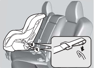 Outer seats: Raise the head restraint to its highest position, then route the tether strap between the head restraint legs, and secure the tether strap hook onto the anchor.