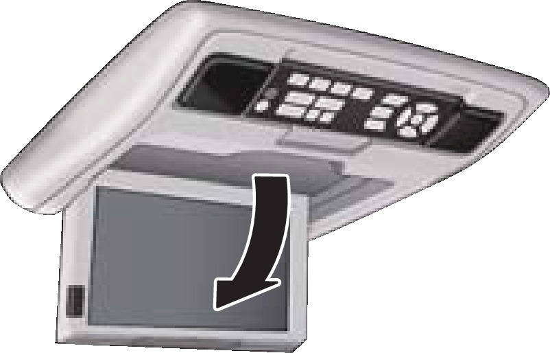 Retrieve the wireless headphones and open the overhead screen to use the system.