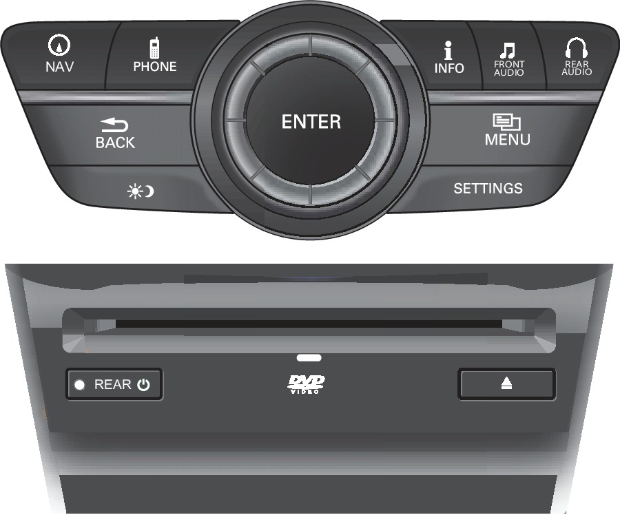 Insert a DVD into the DVD slot. It begins playing automatically. Use the front or rear controls to navigate the DVD.