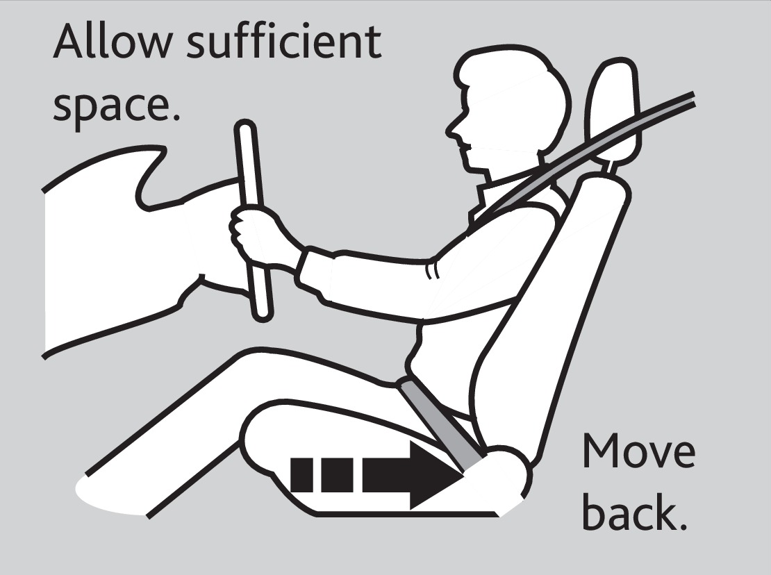 Always sit as far back from the front airbags as possible while maintaining control of the vehicle.