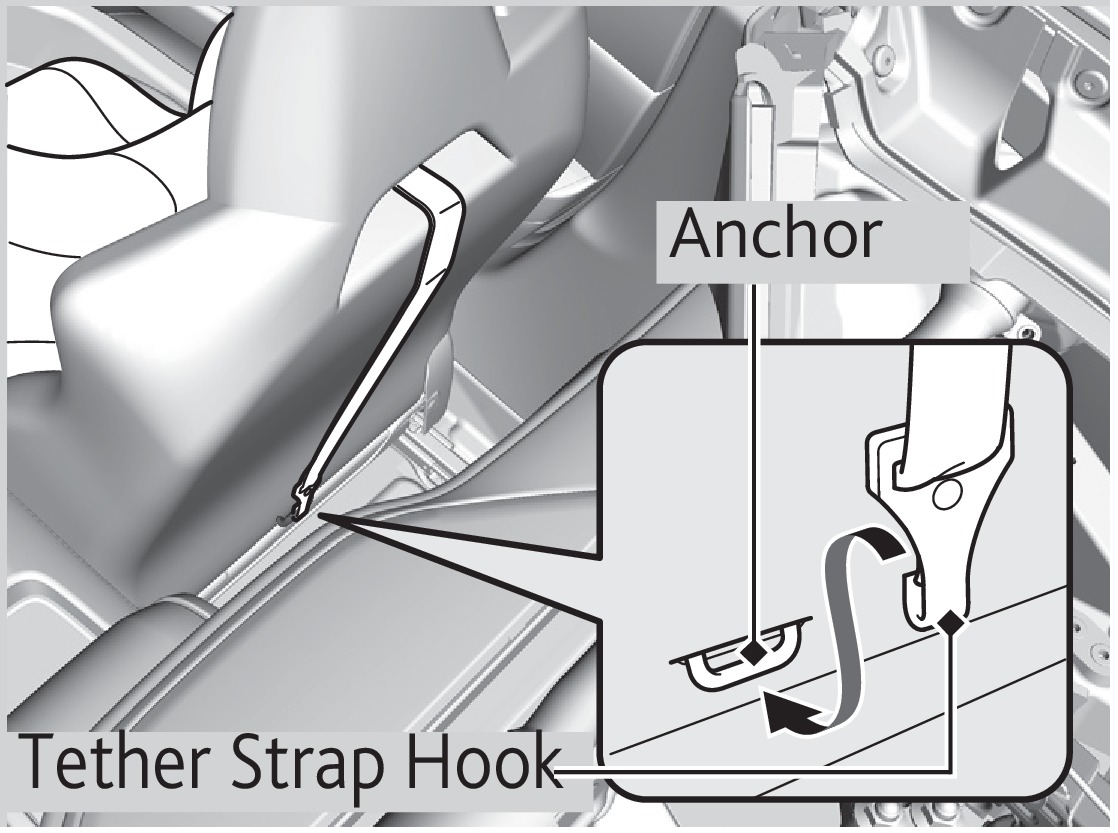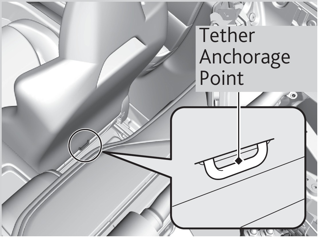 A tether anchorage point is provided behind the passenger seat. A child seat with a tether can be installed, so long as the base of the child seat is secured using a seat belt.