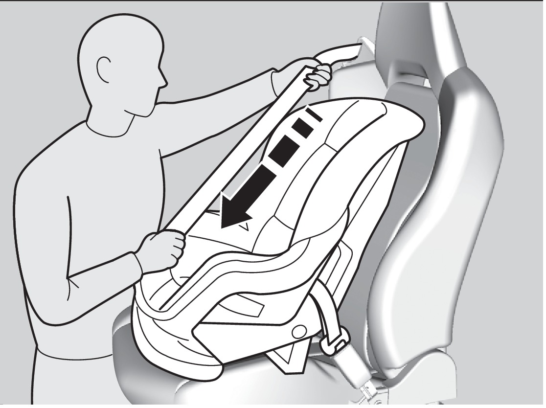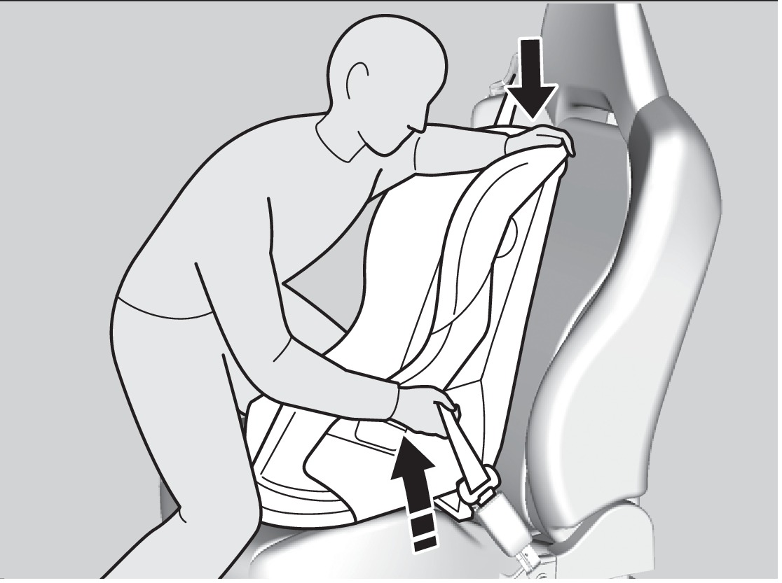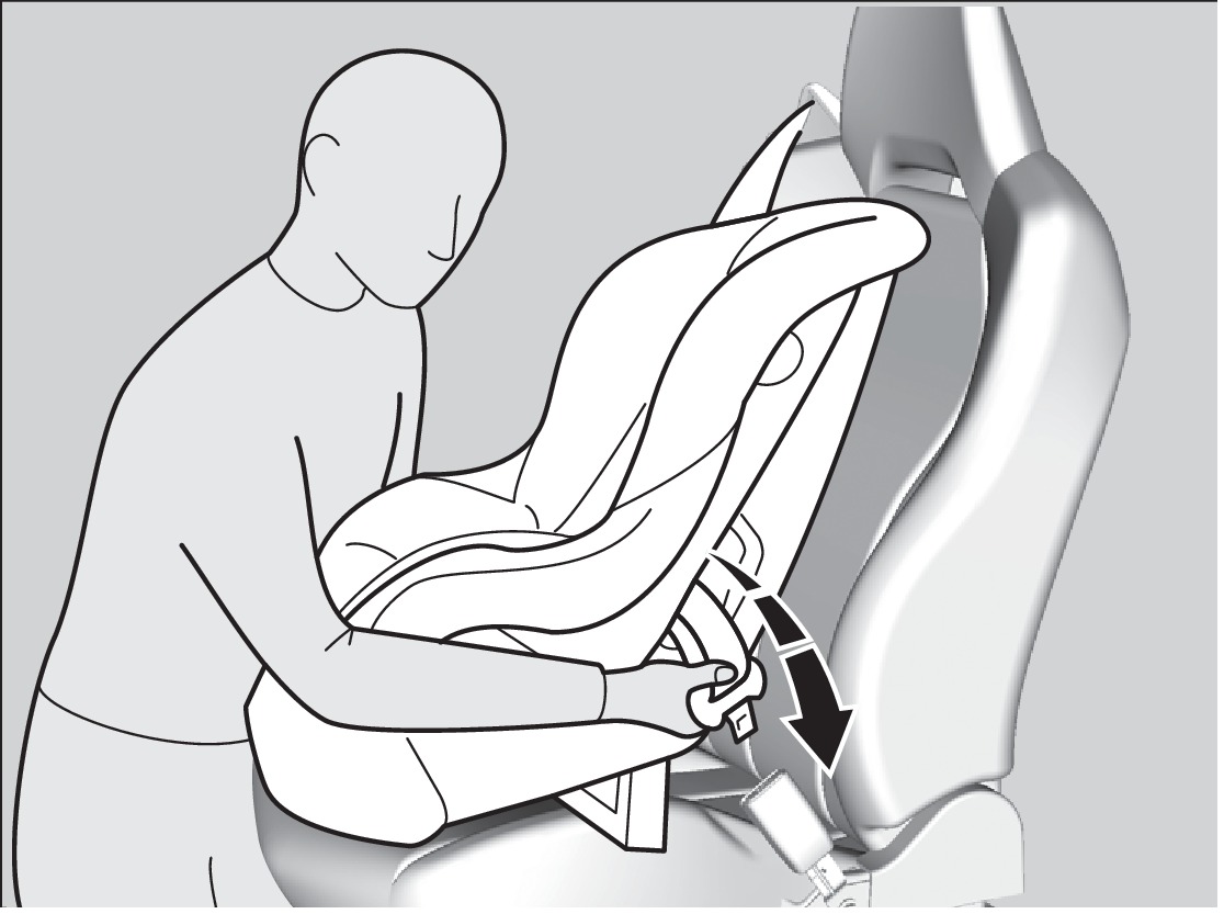 - Grab the shoulder part of the seat belt near the buckle, and pull up to remove any slack from the lap part of the belt. When doing this, place your weight on the child seat and push it into the vehicle seat.