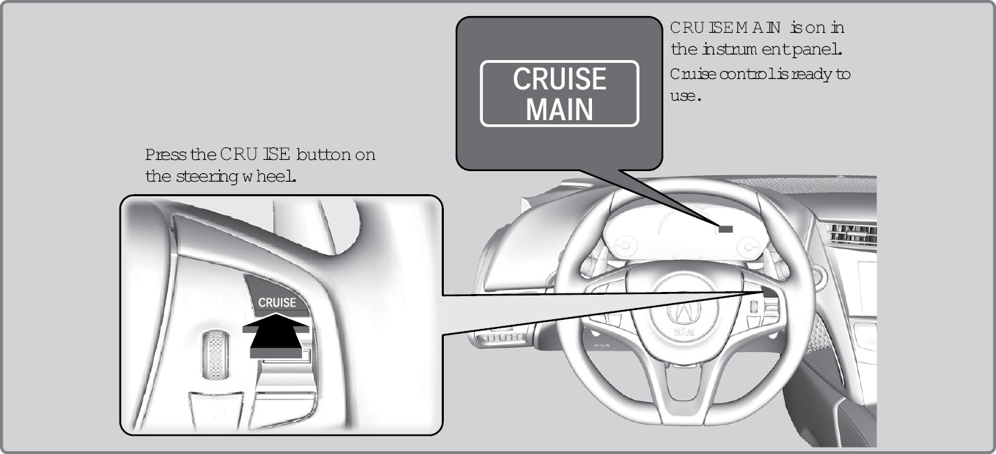 Accelerate to the desired speed (above 25 mph). Press the SET/- part of the switch and take your foot off the pedal.
