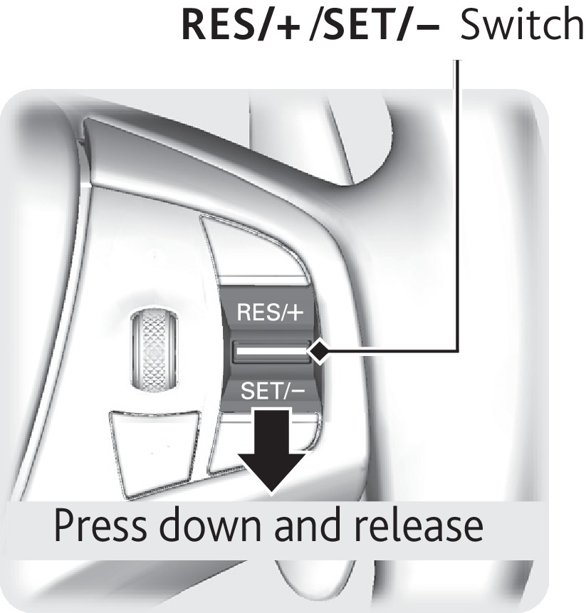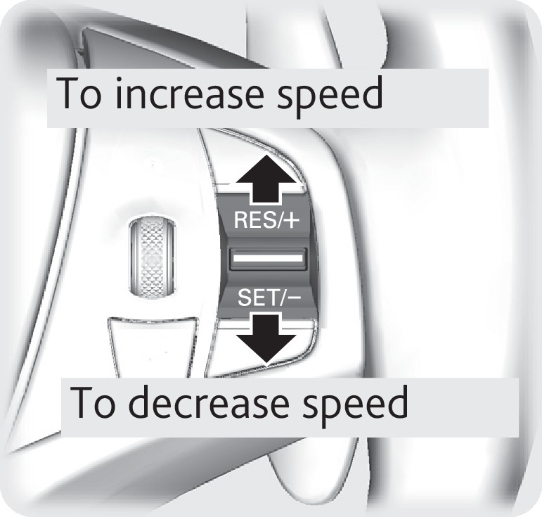 Press the RES/+ section of the switch to increase speed or the SET/- section to decrease speed.