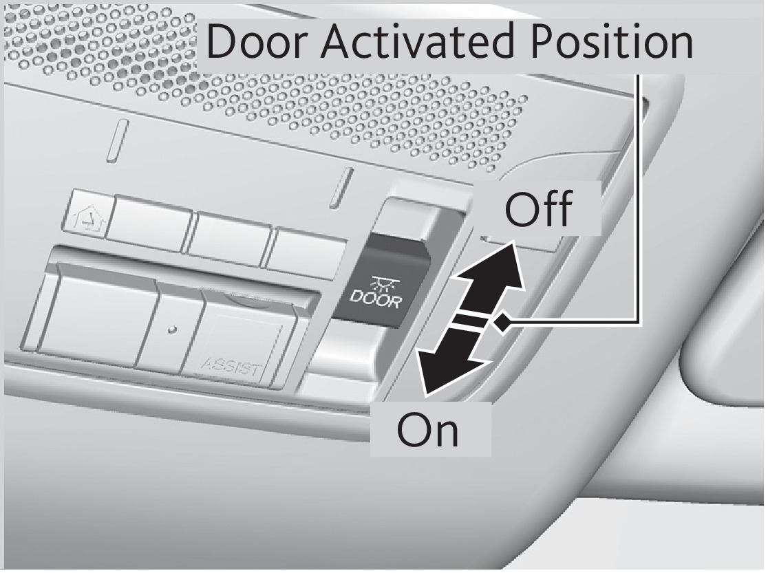 Door activated position: Interior lights come on a door is opened, the driver's door is unlocked, or the vehicle is turned off.