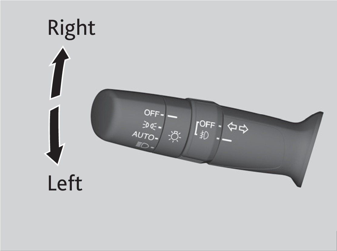 Turn on the automatic lighting feature. Headlights turn on or off depending on ambient brightness when the vehicle is on. Headlights automatically come on after the wipers are engaged for a certain time. |