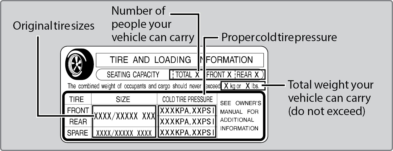 - Properly inflated tires provide the best combination of handling, tread life, and comfort. Refer to the driver's doorjamb label or the specifications (see "Specifications") for the specified pressure.