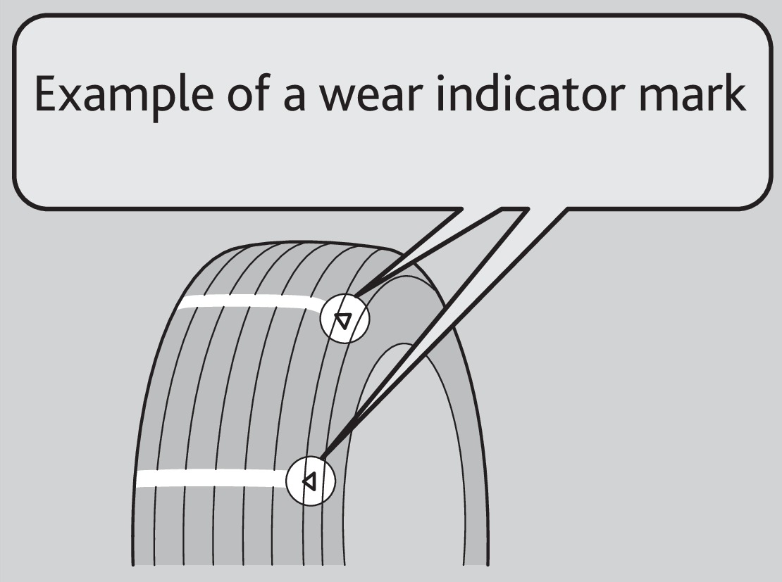 The groove where the wear indicator is located is 1/16 inch (1.6 mm) shallower than elsewhere on the tire. If the tread has worn so low that the indicator is exposed, replace the tire. Worn out tires have poor traction on wet roads.