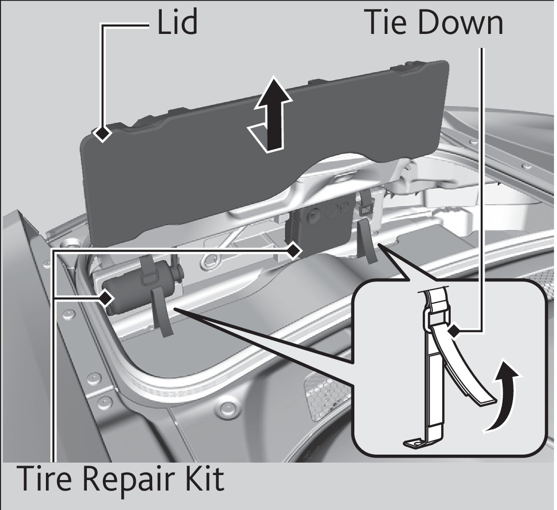 - Place the kit face up on flat ground near the punctured tire and away from traffic. Do not place the kit on its side.