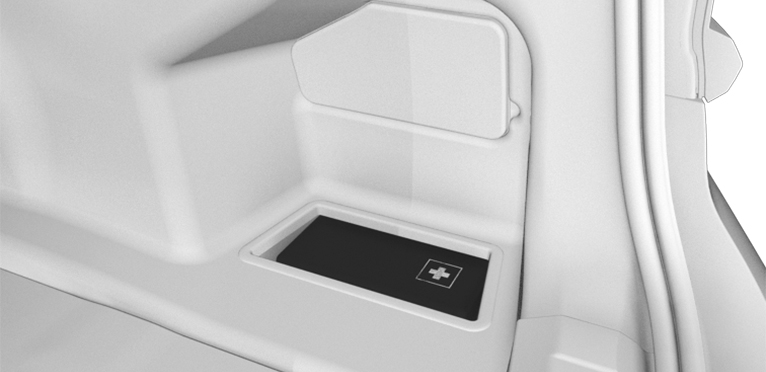 Storage for the first-aid kit is provided in the right storage compartment of the cargo area.