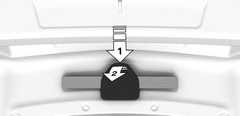 Press on the release, arrow 1, and swivel the cover down, arrow 2.
