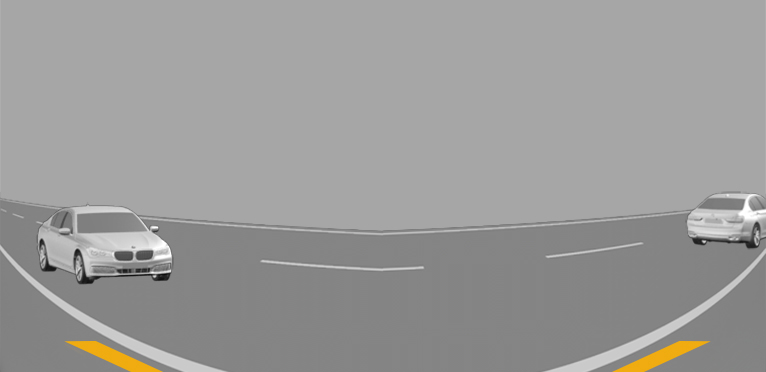 Depending on the view, the vehicle's surroundings or a part of it is depicted.