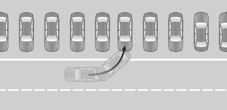 Manual transmission: to achieve the best possible parking position, wait for the automatic steering operation after changing gear on the stationary vehicle.