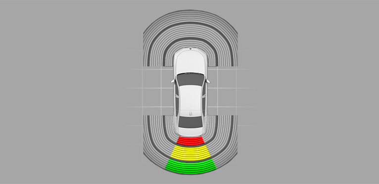 Ultrasonic sensors in the front/rear bumpers.